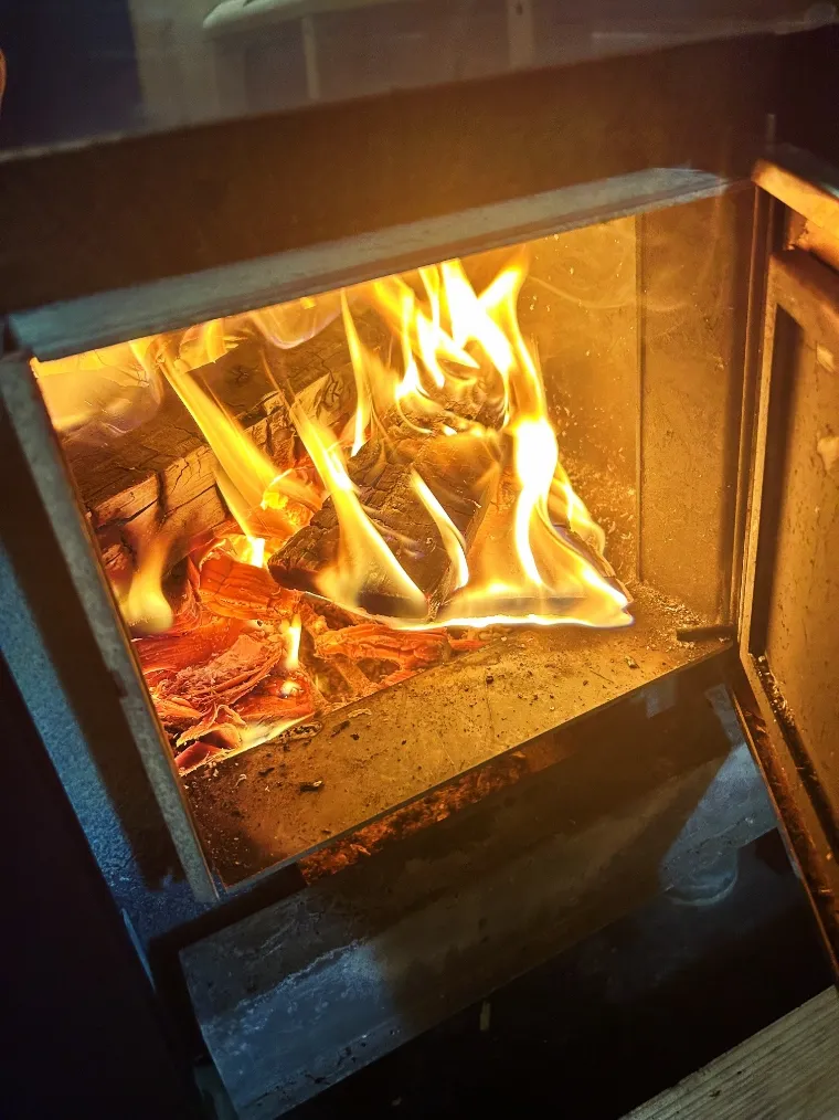 薪を燃やすことで木の香りが広がる同時に、パチパチッという音も楽しめる。
